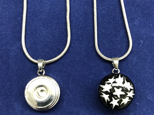 ジュエリーパーツのガラス部分を2つのパーツで仕上げボタン式で付けると言う今までのジュエリーの印象を大きく変えてくれるネックレス、ブレスレットのアイテム!