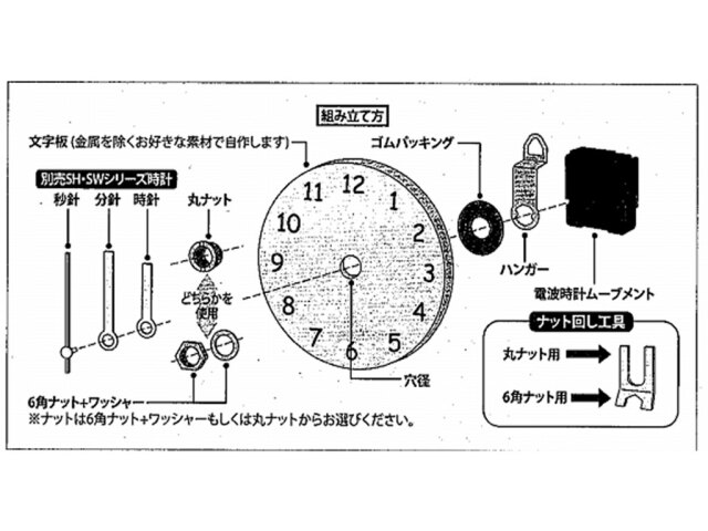 ローマ数字などの文字を文字盤に貼り付けることで、オリジナルのデザイン時計を簡単に仕上げられます。